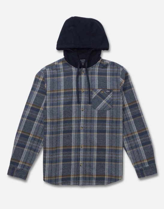Camisa SALTY CREW modelo WHITEWASH HOODED FLANNEL. Color MIDNIGT NAVY.