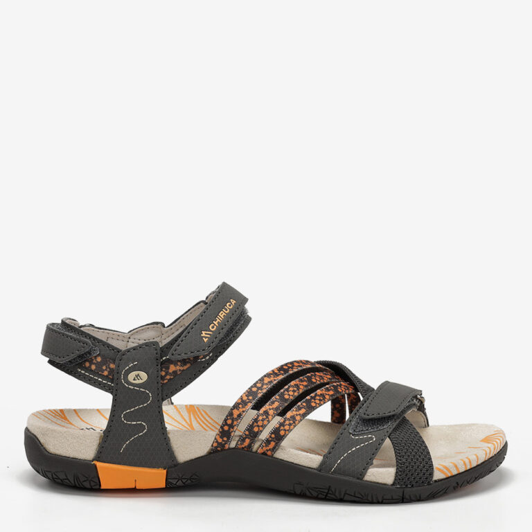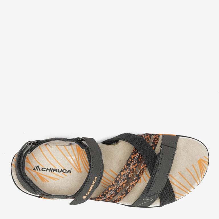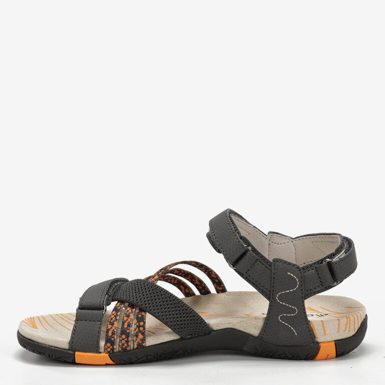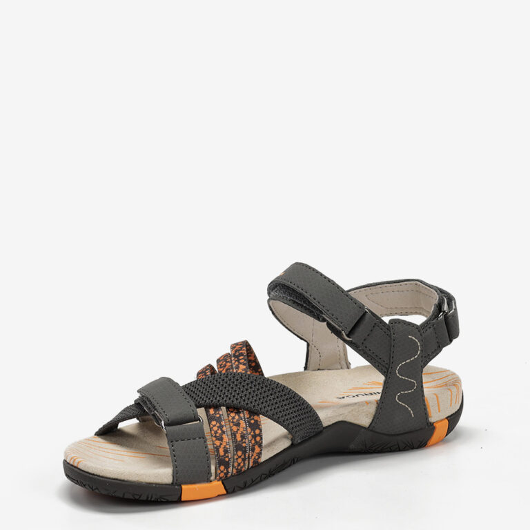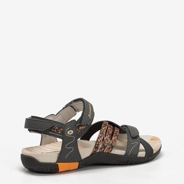 Modelo textil y sintético, ajuste mediante tira elástica, con cierre velcro, entresuela de EVA forrada con microfibra y suela de caucho.